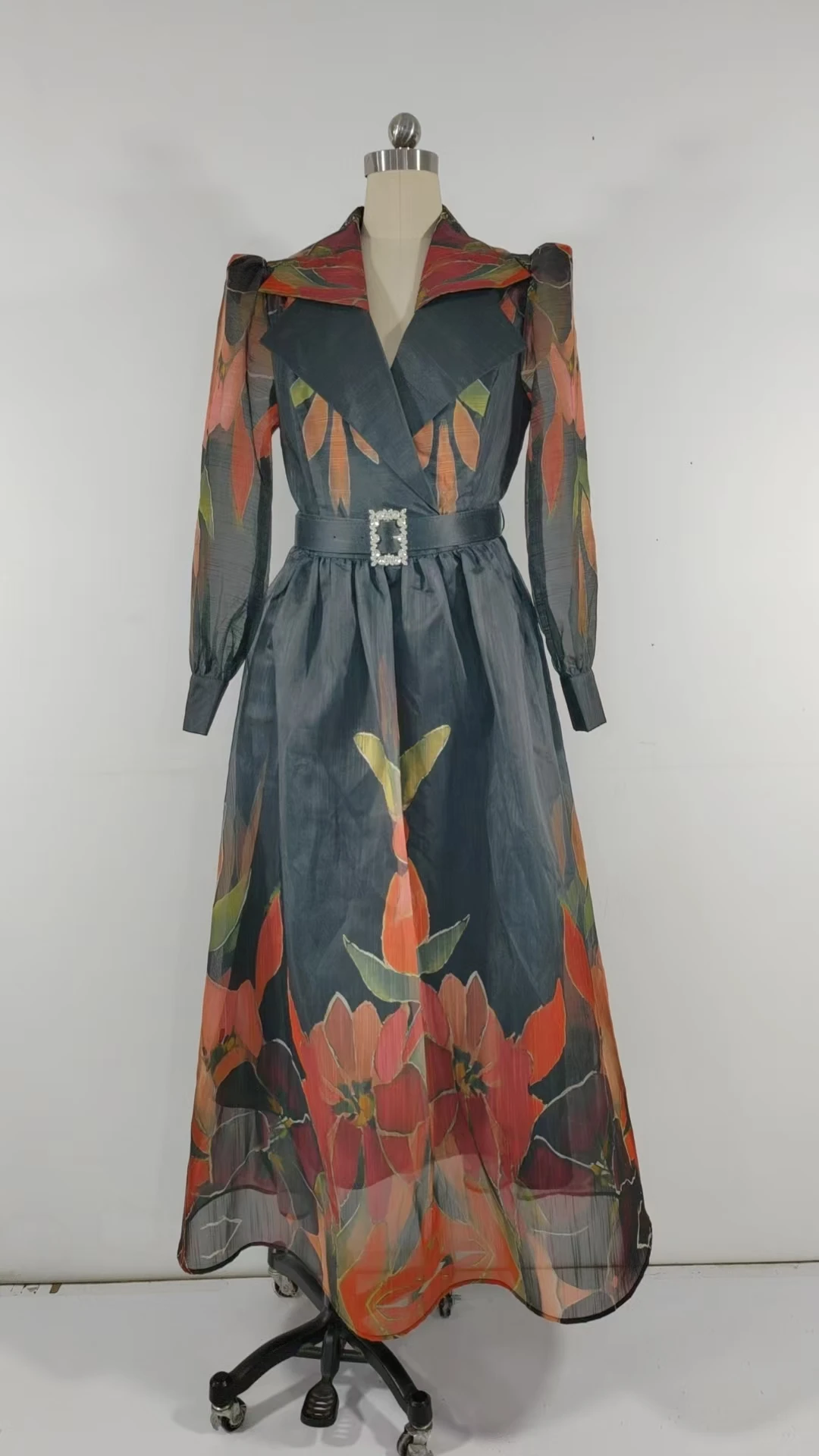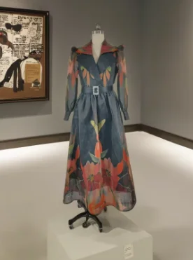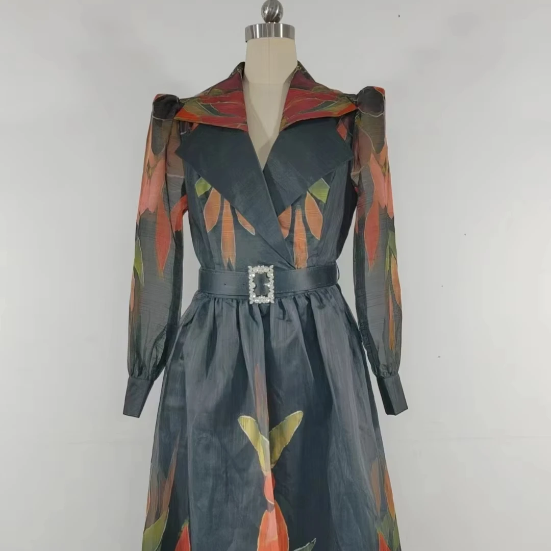 Spring Summer New Style Retro Vintage Casual Loose Dress V-Neck Straps Diamond Ordered Empire Waistline Ruffles Belt